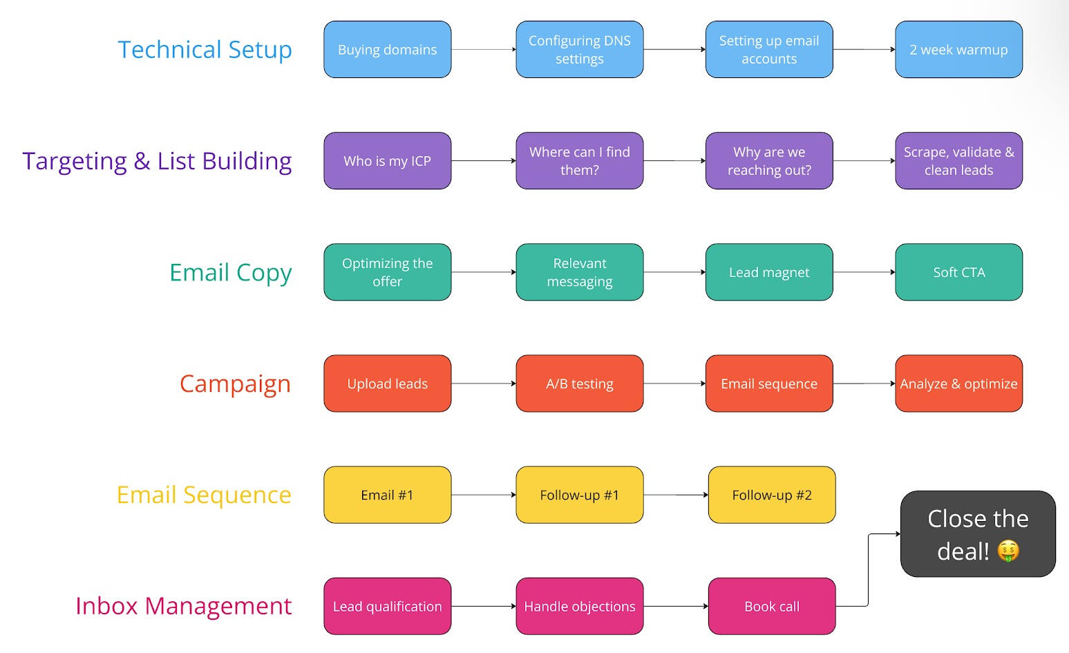 We will then build out your cold email infrastructure and a high quality list of leads to target.